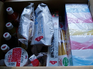 商品を広げてみたところです。すでに右側のおかし2袋は消えて息子と夫のおなかの中です。